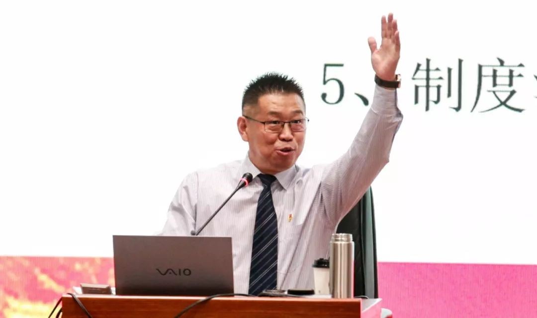 夏國維深入淺出地講解如何理清黨建工作思路、明確黨建工作責任、融入中心做實黨建工作。